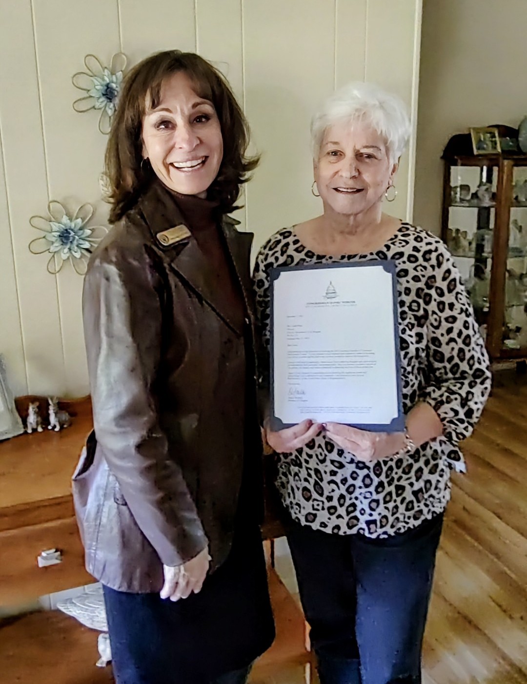 Linda Watts received a Certificate of Special Congressional Recognition from Congresswoman Corrine Brown for her work with Florida’s Hometown USA Program.